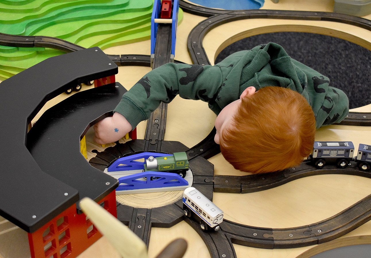 The new exhibit was developed and designed by the Museum’s own team of creative professionals. It reflects the need for very young children to explore both independently and with their adults, take age appropriate risks, engage in rich pretend play, experiment with sensory materials and climb, jump, slide, and crawl.