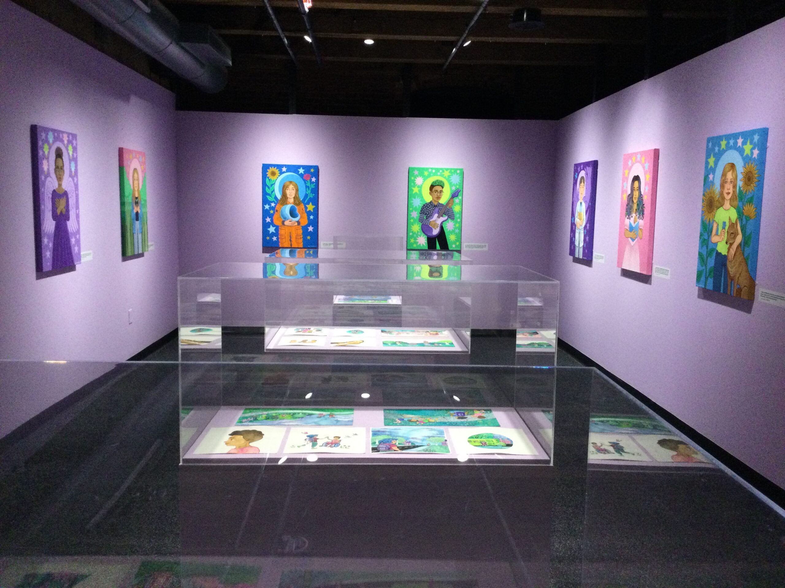 The paintings portrayed each child in dreams they envisioned. Some were silly and playful, others earnest and serious. To create these portraits, Grigni connected with seven transgender kids across New England, ranging in ages from 6 to 12, and interviewed them about their dreams for the future. The paintings illustrated the ideas they described—ranging from making music and writing stories, to intricate scenes of fallen angels crying tears of joy, and celestial wolves circling in the sky. The exhibition also featured a cozy book nook with drawing prompts focused on identity and dreams, which invited Museum visitors to read, write, and create their own masterpieces highlighting their dreams.