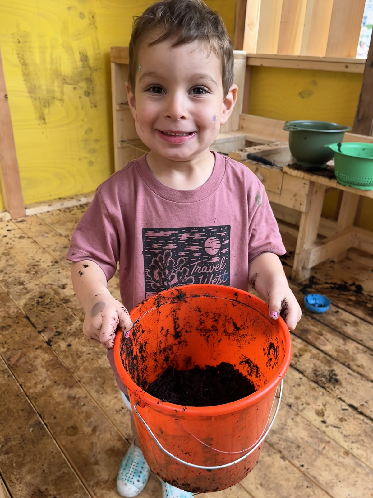A few activity highlights include making mud pies by mixing together soil and water and pouring the mud into pie tins and cupcake molds. During “paint day,” visitors were able to put on an apron, grab some paint, and use the walls of the Curiosity Kitchen as their canvas. One day, staff members hid gemstones under layers of dirt and provided scoops and shovels for kids to mine for treasure. There was also a beach theme where the entire kitchen was covered in sand, seashells, and seaweed. The staff members working in the kitchen often heard the phrase, “This is the best thing ever!” from the children playing in the Kitchen. Over the nine weeks that Curiosity Kitchen was open, over 6,800 adults and children visited to play, making it a memorable summer program at the Museum for both visitors and staff.